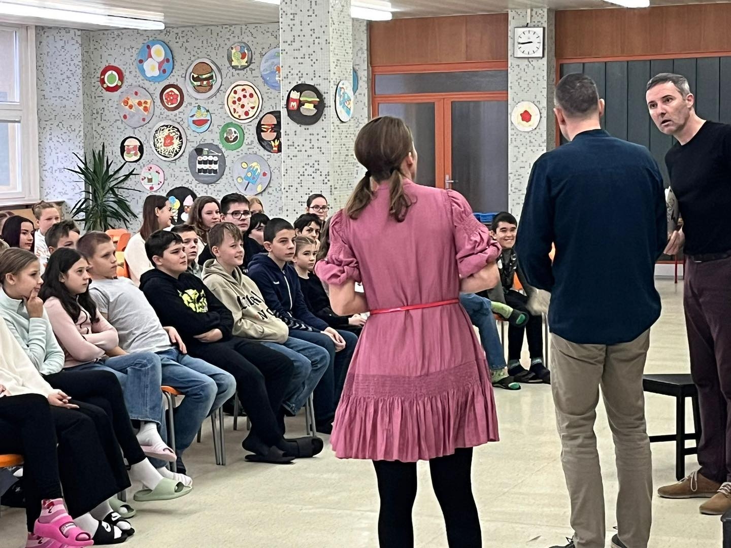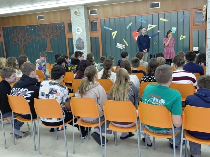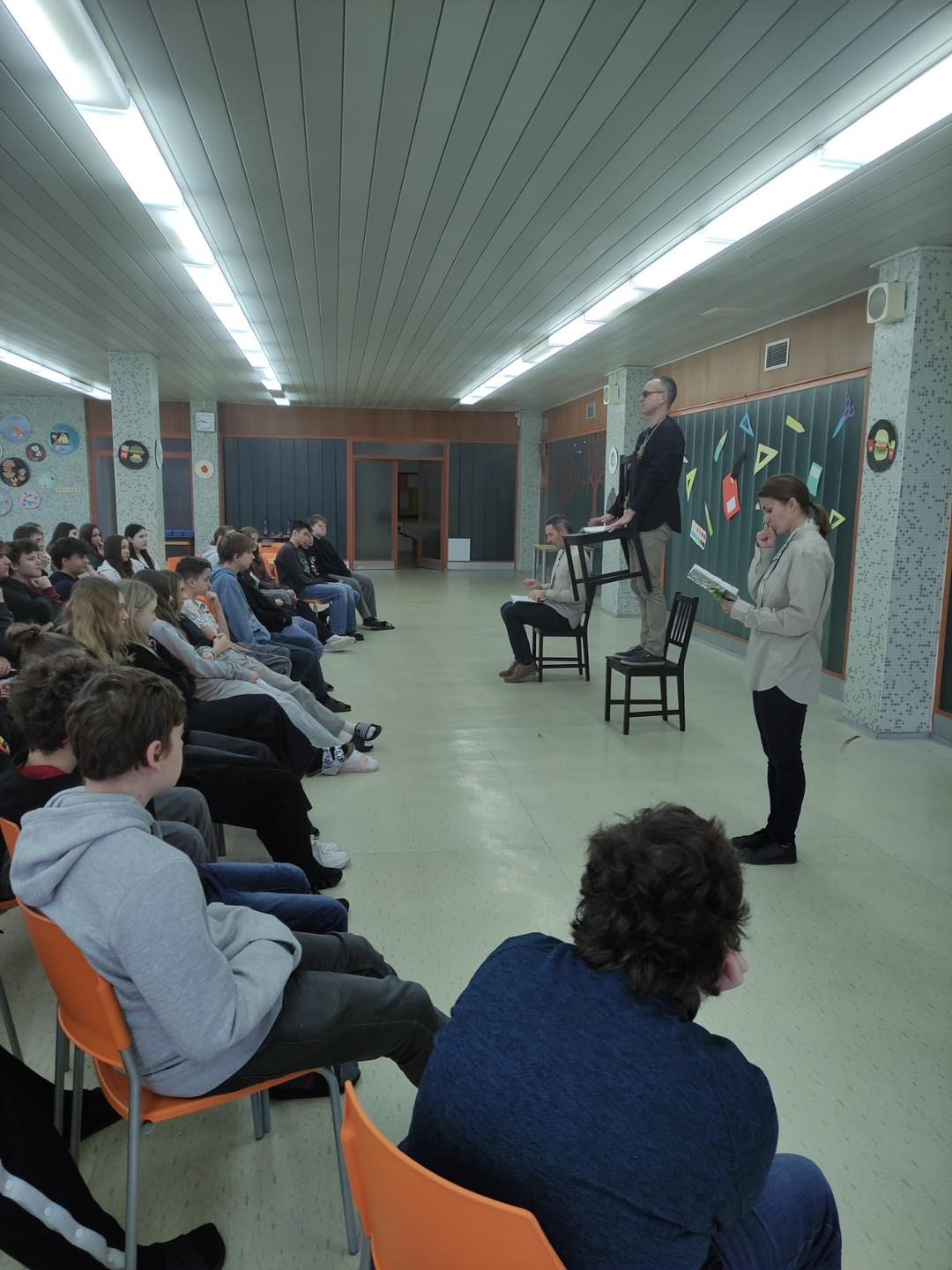 Ve čtvrtek proběhlo scénické čtení na druhém stupni. Šesté a sedmé ročníky zhlédly představení Alenka v kraji divů. Osmé a deváté ročníky se mohly zamyslet nad zkreslováním reality v médiích při představení Skandální aféra Josefa Holouška.