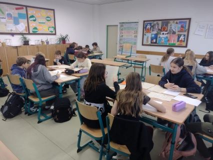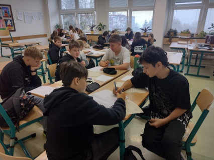 Žáci druhého stupně se zúčastnili krajské soutěže, která podporuje matematickou gramotnost. Zjistili, že práce v týmu je zajímavá, vzájemně si pomáhali. Po celou dobu devadesáti minut bylo vidět, že pracují s nadšením.