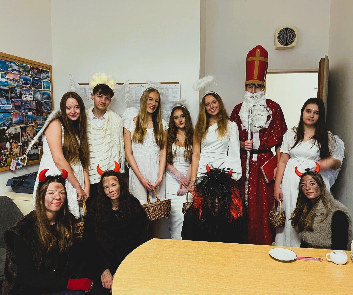 Žáci 9. ročníku se 5. 12. 2025 opět ujali krásné mikulášské tradice. V kostýmech Mikuláše, andělů a čertů prošli školou a rozdali spoustu úsměvů i malé nadílky. Děkujeme jim za skvělou atmosféru a vzorné zastoupení našich nejstarších žáků!
