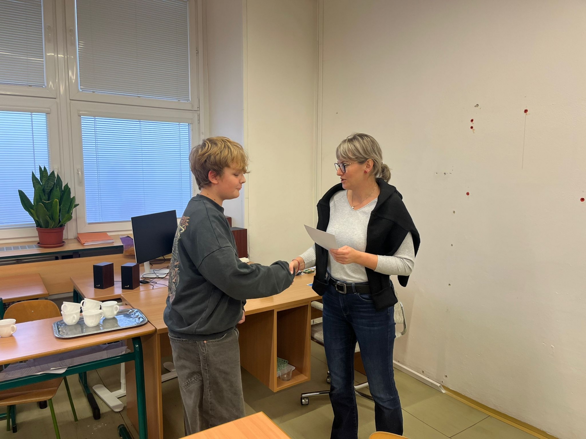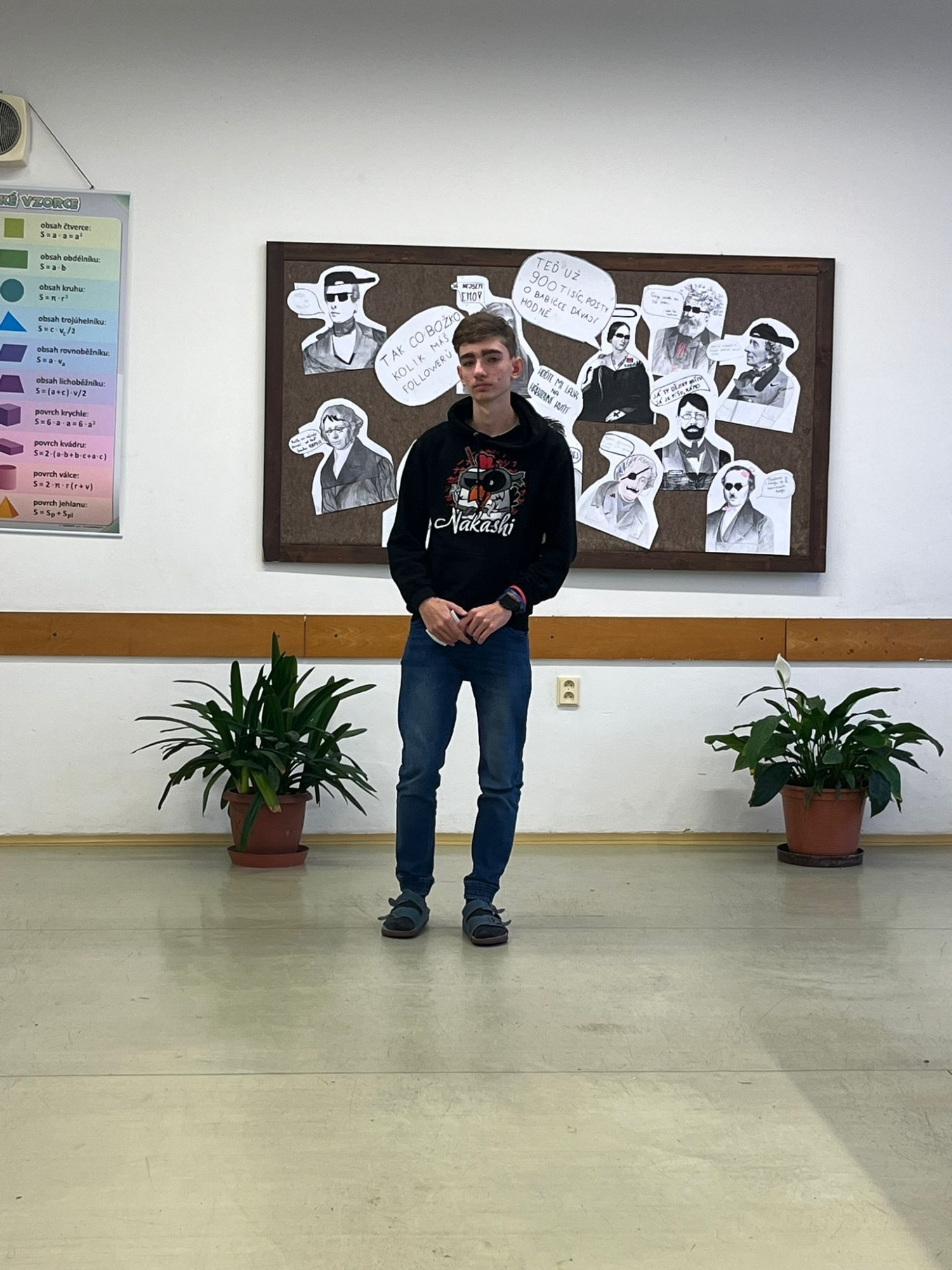 Osmáci a deváťáci ve středu poměřili své řečnické dovednosti ve školním kole soutěže Mladý Démosthenés. Mírnou trému rozptýlily už tradičně sušenky s čajem. Do dalšího kola postupuje Kryštof, Eva a Filip.