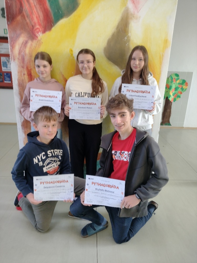 Ve dnech od 13. - 17. října proběhlo školní kolo Pythagoriády. Této matematické soutěže se zúčastnilo 102 žáků naší školy. Soutěž je určena pro žáky druhého stupně základních škol a odpovídajícím ročníkům víceletých gymnázií. Je rozdělena do čtyř kategorií - 6., 7., 8., a 9. ročník a skládá se ze dvou kol. V dalším okresním kole budou naši školu reprezentovat nejlepší řešitelé školního kola: A. Kaněčková (6. B), Š. Černý (6. A), A. Plaksii (7. B) a M. Burešová (7. B).