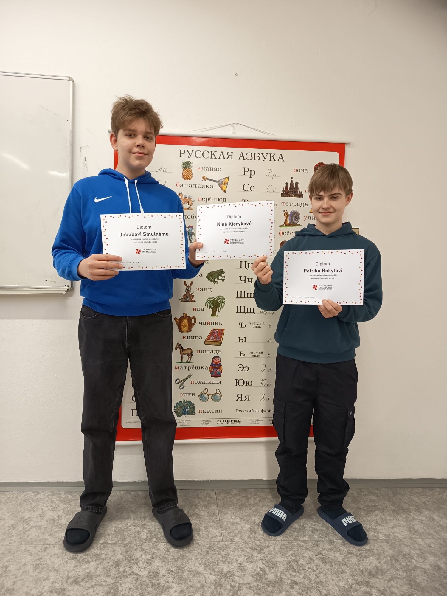 V ruštině předvedli nejlepší výkony Nina Kieryková (1. místo), Jakub Smutný (2. místo) a Patrik Rokyta (3. místo) - všichni z 9.B.