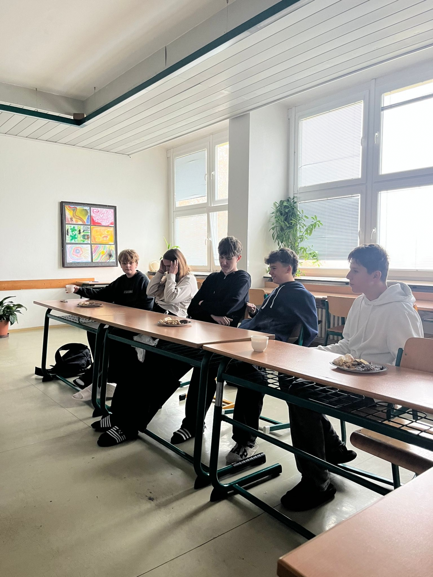 Osmáci a deváťáci ve středu poměřili své řečnické dovednosti ve školním kole soutěže Mladý Démosthenés. Mírnou trému rozptýlily už tradičně sušenky s čajem. Do dalšího kola postupuje Kryštof, Eva a Filip.