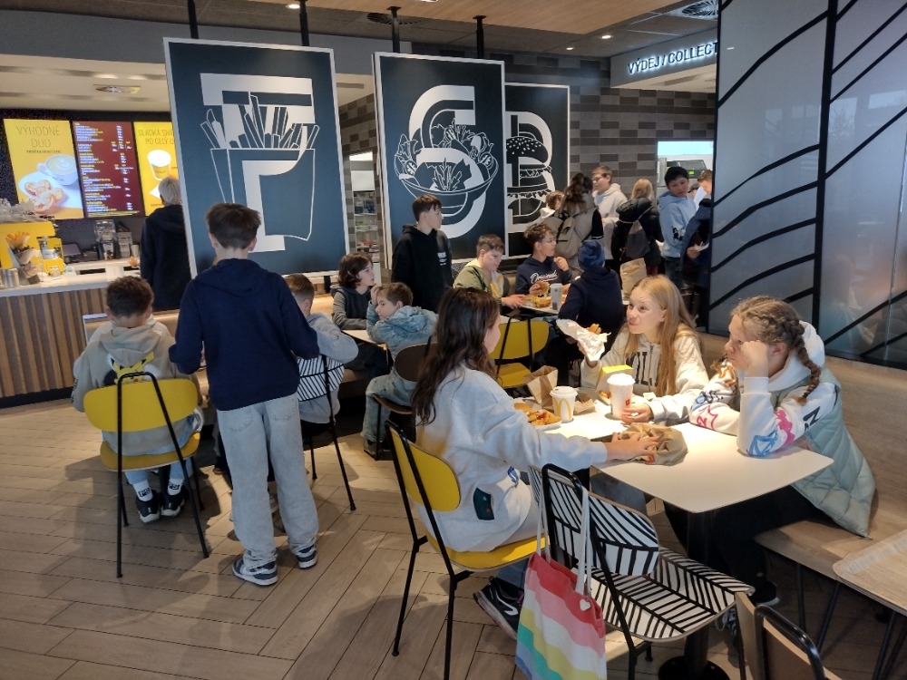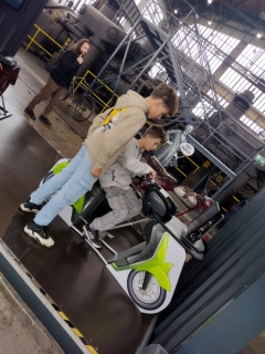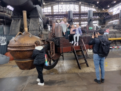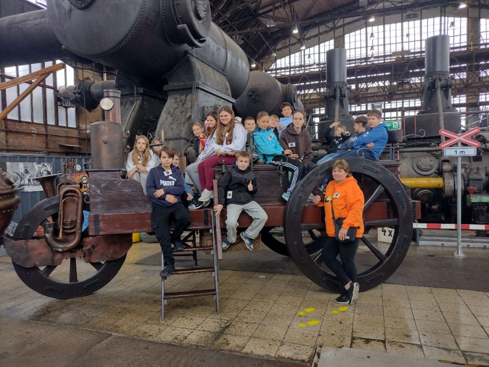 Dopoledne jsme si prošli s paní průvodkyní Malý svět techniky, který se nachází v bývalé VI. energetické ústředně z roku 1938. V názvu je sice slovíčko "malý", ale když se rozhlédnete, uvidíte samé "velké věci", které lidstvo posunuly kupředu. Všechny exponáty na ploše 600 metrů čtverečních jsou interaktivní, vše je dovoleno vyzkoušet. A tak jsme jezdili na kole, na šlapadlech, na motorkách i v autech, chvilku jsme byli i pod hladinou moře v ponorce, stali jsme se kapitánem lodi. Testovali jsme potrubní poštu, navštívili jsme obráběcí dílny i nově otevřenou kovodílnu. Vyzkoušeli jsme stříhání, ohýbání či ražení plechu. A někteří si vyrobili svůj vlastní výrobek. Jednotícím prvkem celého programu je vize Julese Verna.